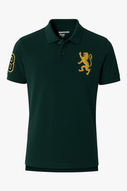 Elevate your casual look with this premium dark green polo shirt, crafted for style and comfort. Featuring a bold golden lion crest on the chest and a striking embroidered "8" on the sleeve, this polo is perfect for those who appreciate timeless designs with a modern twist.
